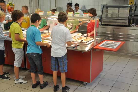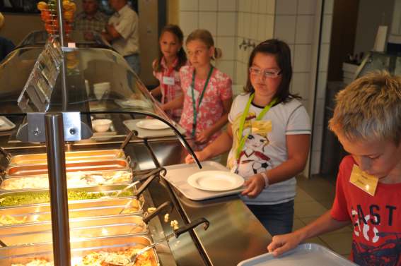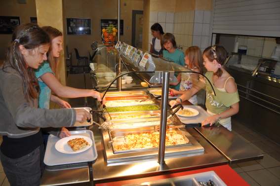 Bei der Selbstbedienung nimmt sich jedeR SchülerIn EINE Hauptkomponente und ergänzt diese mit den angebotenen Beilagen nach Belieben. Die SchülerInnen werden vom Küchenpersonal unterstützt.