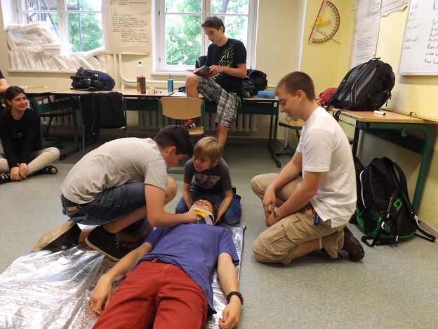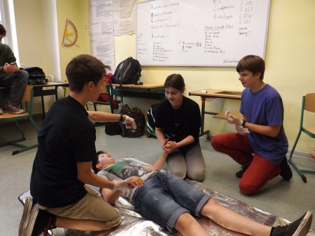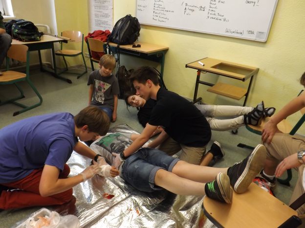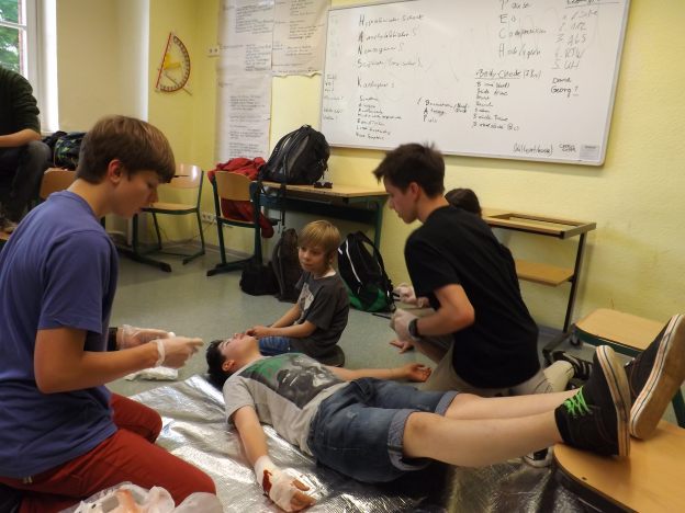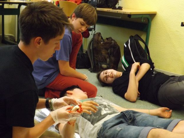 Der Schulsanitätsdienst trifft sich regelmäßig in Raum 005. Dort findet man auch weitere Informationen zur Zeit.